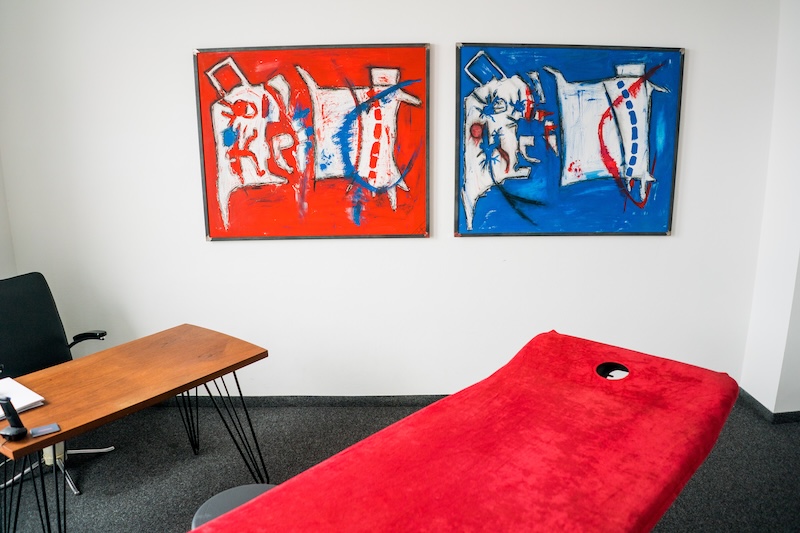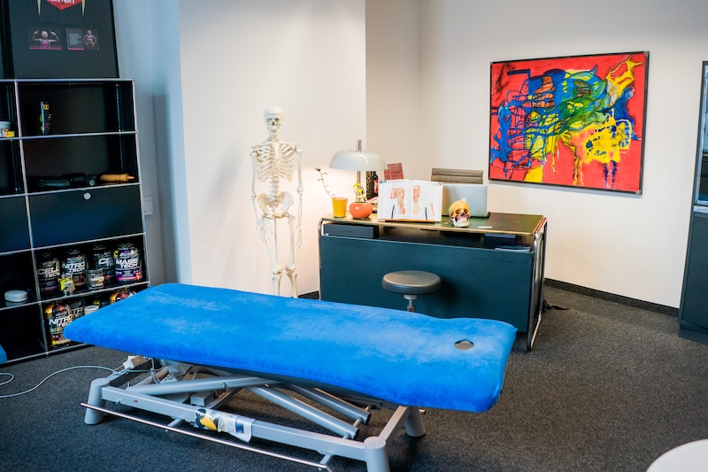 Unsere Praxis verfügt über mehr als 10 Behandlungsräume auf zwei Etagen. Hier erfolgen Anamnese, Funktionschecks und die befundorientierte Hands-on-Arbeit: gelenknahe Mobilisationen, weichteilorientierte Techniken sowie – falls sinnvoll – Lymph- und physikalische Anwendungen.